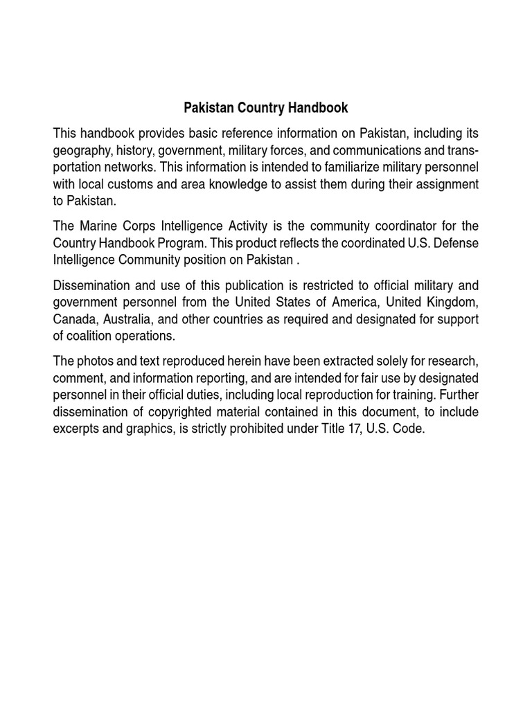 Source : www.scribd.comPakistan Country Handbook This handbook provides basic reference